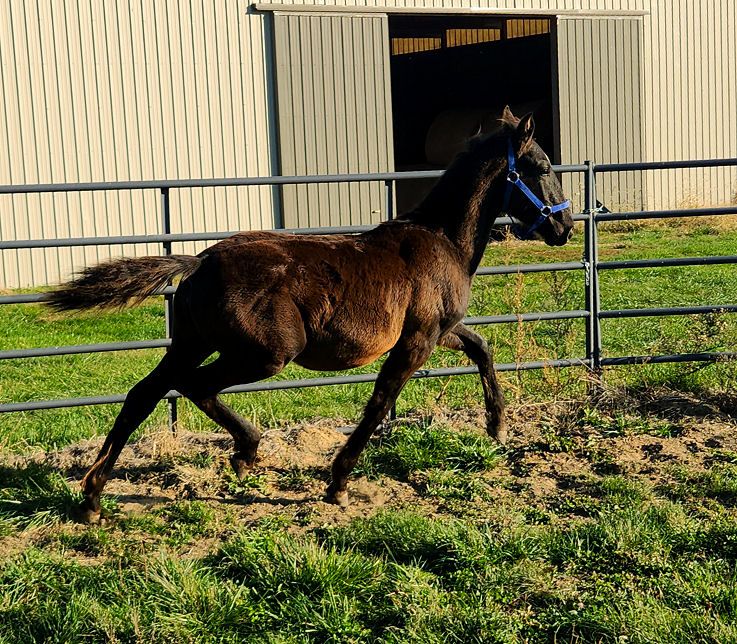Blueberry is a Thoroughbred mare foaled 2015 in foal by Valiant due April 16th, 2025 Blueberry is HUGE. She really does stand 16.3 hands. She was bred to Valiant and delivered her big black beautiful filly April 17th, 2025. This filly is named Roseberry and is for sale $7000.00. She will be tall and have wonderful movement. To see her birth video click HERE. Scroll down for her pictures.