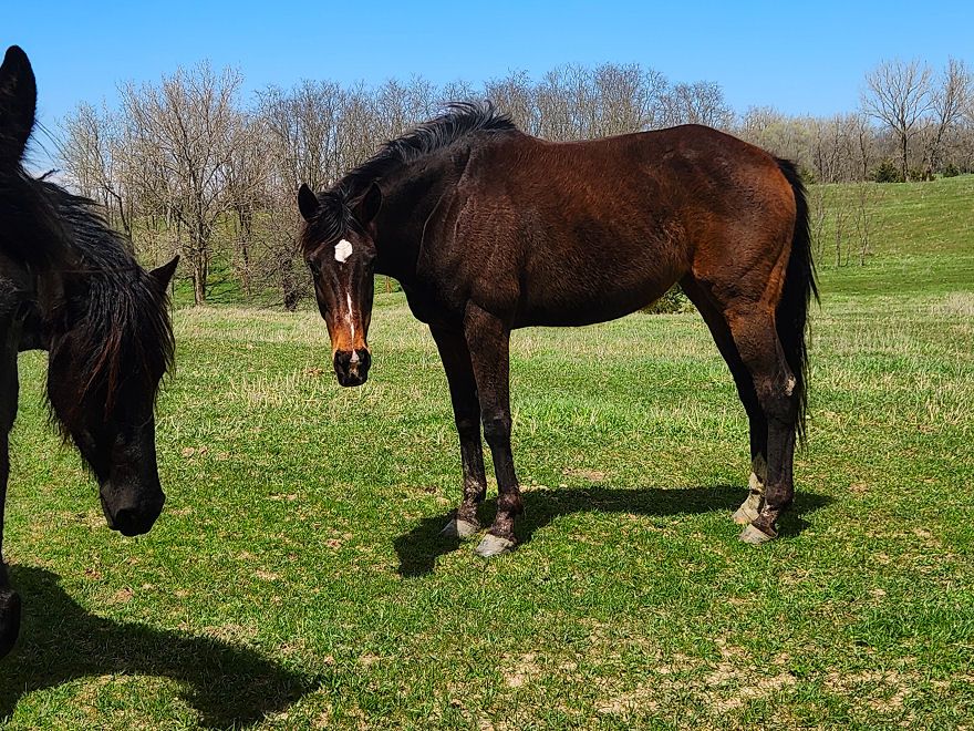 Star arrived at our farm Dec 6th, 2024. She was born May 2nd, 2022 and is an off the track Thoroughbred mare. She is another rescue. She has been bred to Valiant due April 18th, 2026